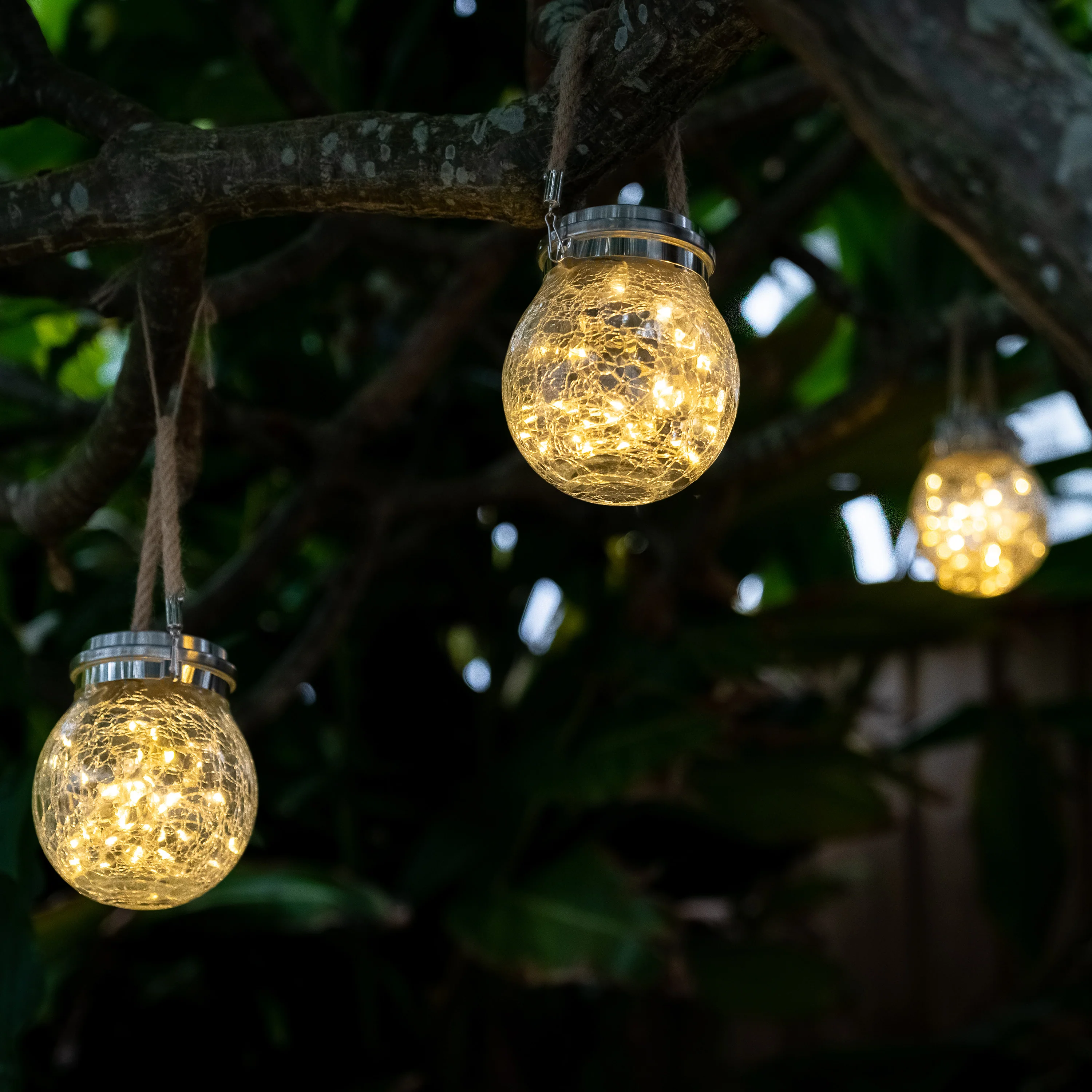 With its unique design, this Crackle Solar Jar Light can illuminate any balcony or entertaining area with its soft, ambient glow. It can also be hung as a beautiful pendant light from a sunny pergola or tree branch.Â